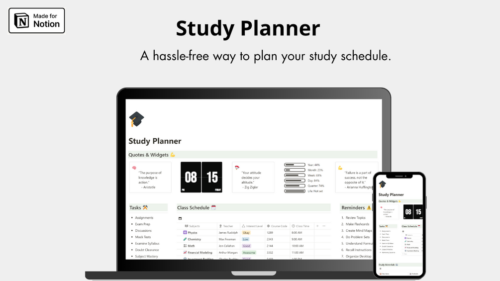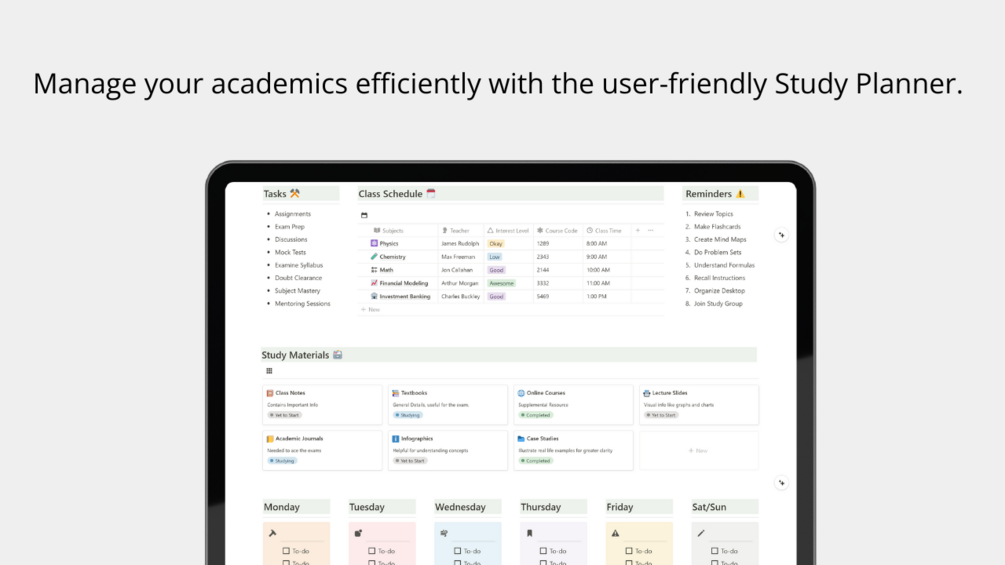 Get a grip of your study schedule with the elegantly designed Study Planner!
